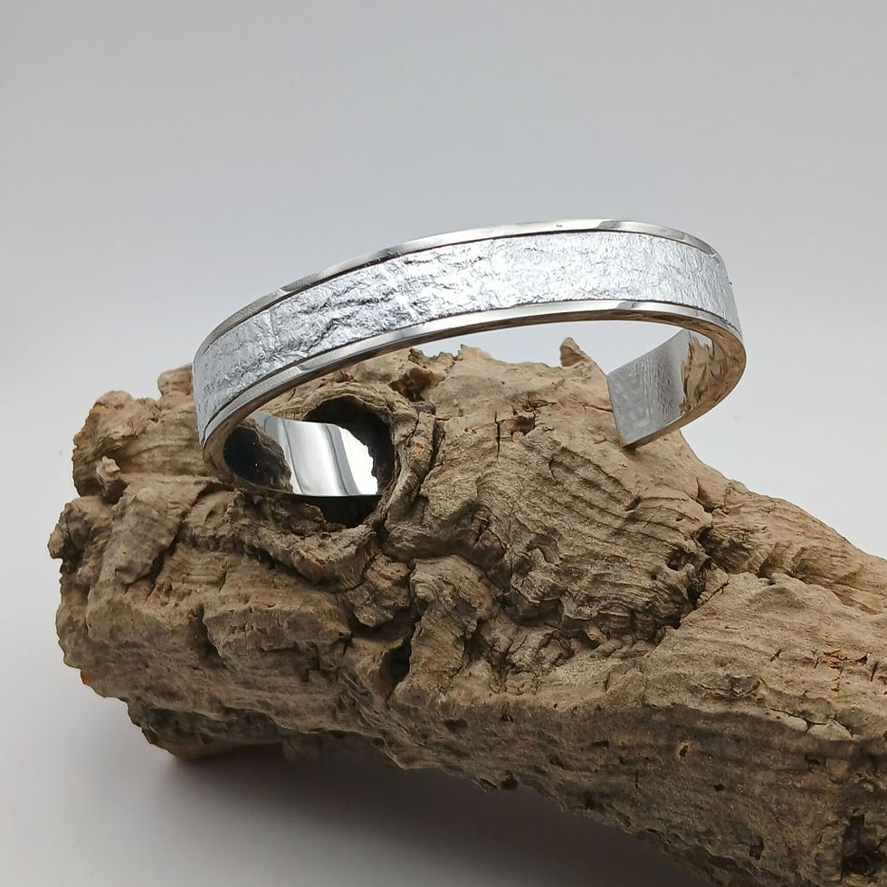 Bracelet en acier inoxydable et matière végan en Pinatex argenté